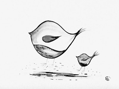 In the mean time I have been doodling and experimenting with some watercolour paper, a wet brush and a Black Tombow pen!